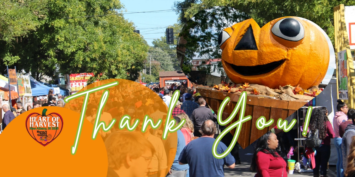 Come experience over-the-top floats, vintage cars, and loud bands with our Heart of Harvest parade. The parade kicks off Harvest Homecoming on October 4, 2025 at 3:00 pm from New Albany High School, marches down Vincennes Street, then takes a right on Spring Street and ends on Bank Street. You can have a front row seat to all the action, along any street!